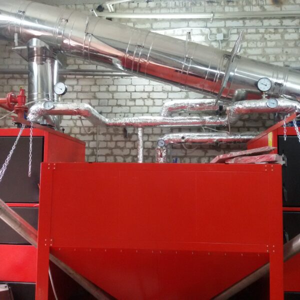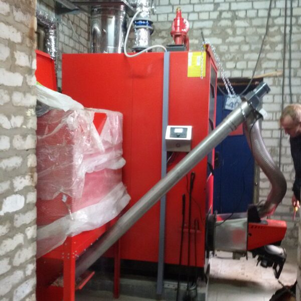 Спроектирована и реализована твердотопливная котельная на двух пеллетных котлах по 150кВт каждый. Автономная работа котельной рассчитана на 3-7дней. Два котла дают возможность выйти на максимальную мощность в максимальные морозы и экономить топливо в межсезоне за счет работы одного котла.