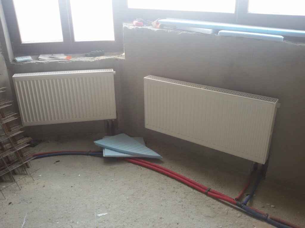 Квартира в новострое Харькова 100м2. Отопление сделано на водяных теплых полах трубой Heat-Pex и стальных радиаторах Purmo.